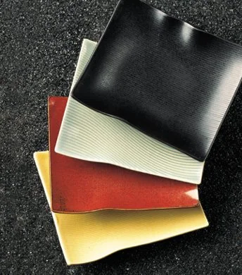 In the Nineties, I crafted an assortment of plates and trays for various dishes, desserts, and serving purposes, utilizing a range of textures and glazes. Limiting my color palette to four distinct glazes – Temmoku, Rust red, Seto Yellow, and a Seladon color – I drew inspiration from Japanese table culture. This culture, in stark contrast to Western practices, involves the arrangement of diverse pieces, from delicate porcelain to rough-hewn plates of dark stoneware, all harmoniously composed based on seasonal cues.